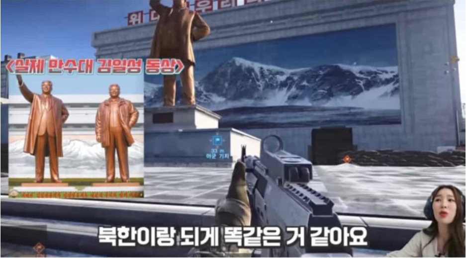 기야 진짜 새터민 출신 유튜버를 데려와 평양 맵을 플레이하는 영상이 나왔는데, 북한 고향 출신 남녀 새터민이 플레이하면서 계속해서‘진짜 똑같