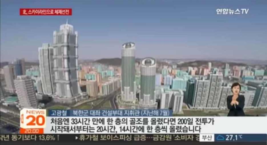 북한은 매년 40억 달러 이상이 들어가는 건설비를 감당할 수 없었습니다. 그래서 건물은 완공되어야 했지만 방치되었습니다.
