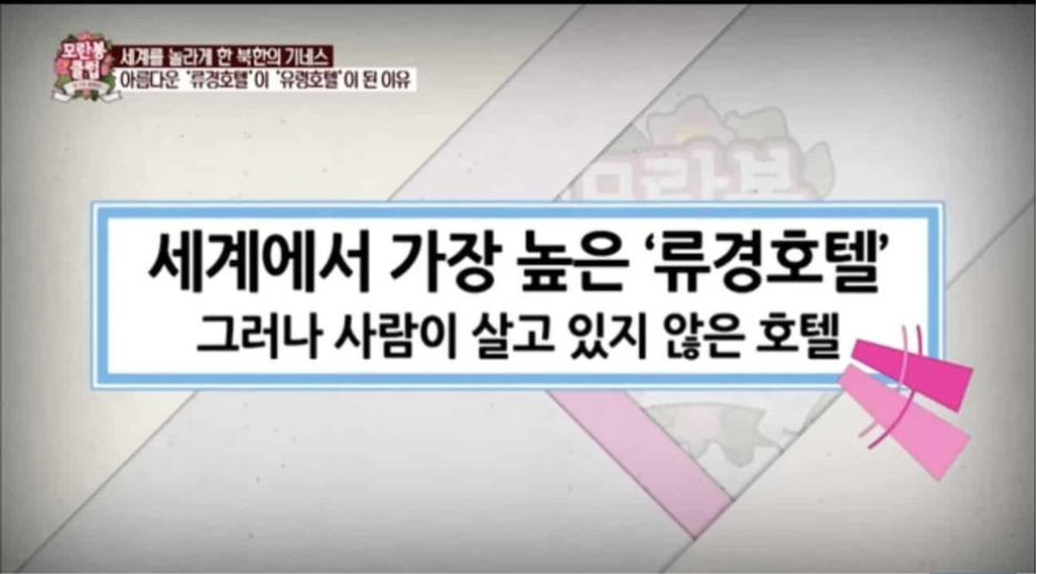이 호텔은 북한에서 가장 높은 건물이자 세계에서 가장 형편없는 건물이라는 비참한 타이틀을 지니고 있는 류경호텔입니다.