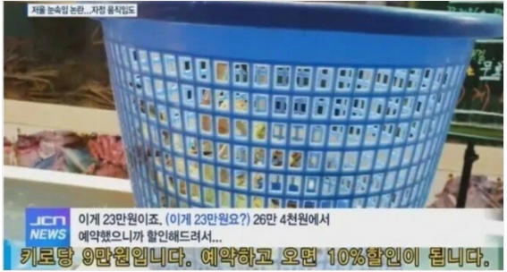 수산시장에서 회나 게를 구매하시는 분들은 '바구니'와 '무게'를 정확하게 확인하시기 바랍니다.