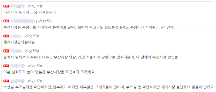 이미 많은 사람들이 수산시장의 '눈속임'에 대해 공감하고 있습니다.