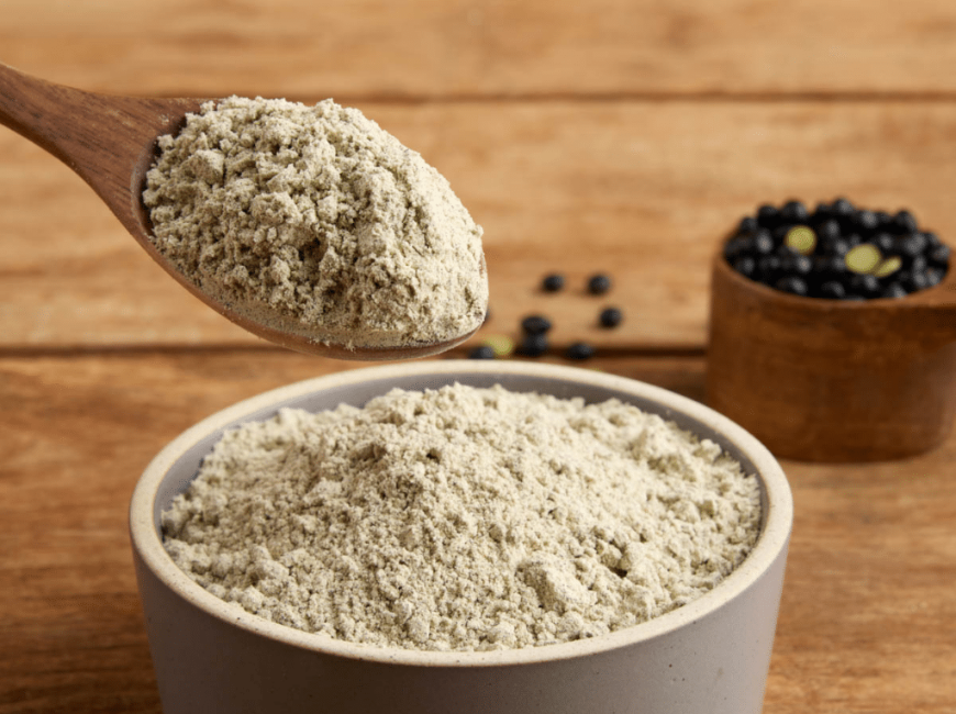 ① 보리가루와 멥쌀가루를 150g씩 섞어 물 한 컵을 나누어 넣는다. (반죽이 부서지지 않는 것을 확인하면 완료)