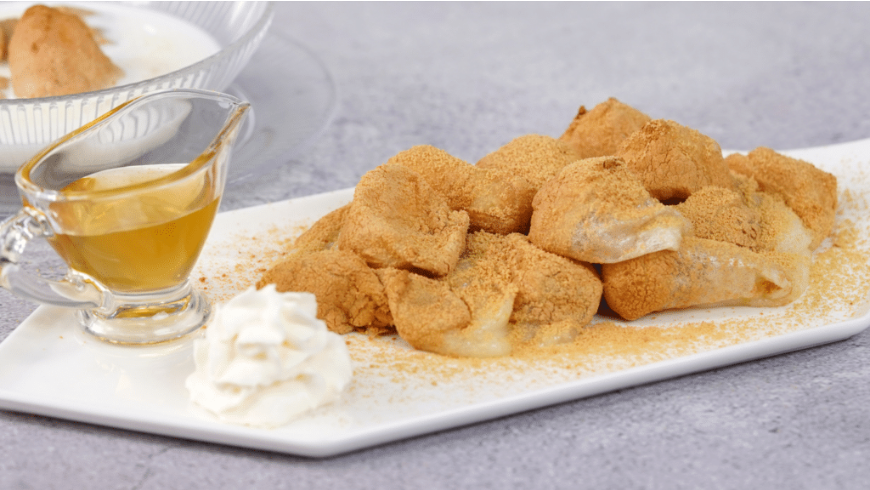 ③ 찬밥 반죽을 쥐눈이콩 가루에 묻혀 구워준다.