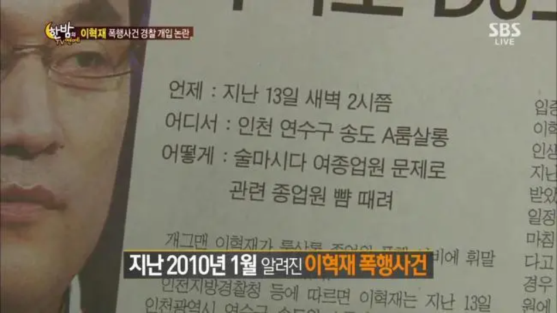 하지만 이혁재는 다양한 방송태도 논란과 언행과 태도에 대한 논란 때문에 구설수에 오르다 결국 2010년 유흥업소 여종업원 폭행 사건을 일으키게 됩니다.