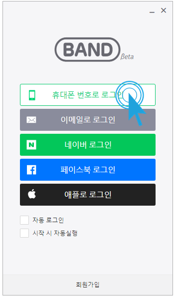 8단계: 이제 밴드를 실행해보십시오. 본인이 사용하는 로그인 방법을 사용하여 밴드에 로그인하십시오.