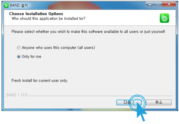 3단계: 다운로드한 밴드 컴퓨터 버전 설치 파일의 이름은 'BAND-버전'입니다. 해당 파일을 실행하여 밴드 컴퓨터 버전을 설치합니다.